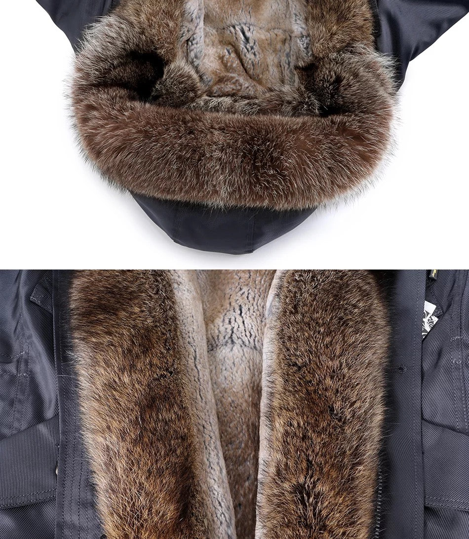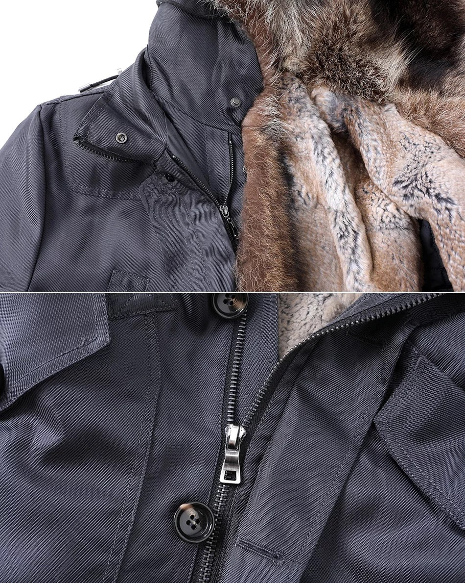 Außen überzeugt der Parka gekonnt durch sein elegantes Design. Gefüttert ist der Parka aus edlem Kaninchen-Fell, das euch auch an den kältesten Tagen noch richtig warm hält.